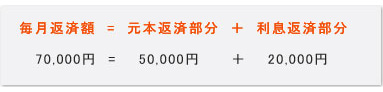 であったものが2年目に金利が2%に上昇したとすると、返済金額7万円の内訳は次のようになります。