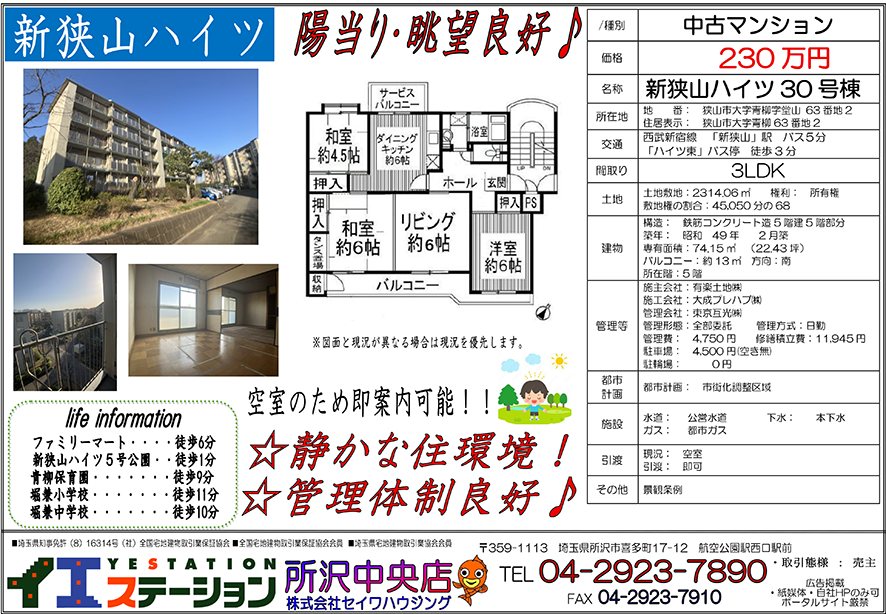 今週のチラシの他、オススメ物件のチラシも定期的に掲載いたします。 新着チラシは配布より先に公開することも・・・。!? 気になる物件、ご希望の物件がございましたら、お気軽にお問い合わせください!